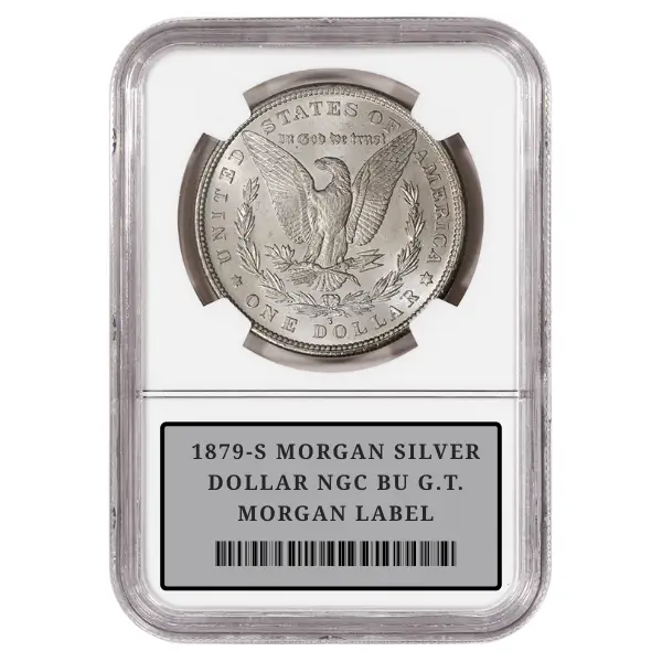 1879-S MORGAN SILVER DOLLAR NGC BU G.T. MORGAN LABEL