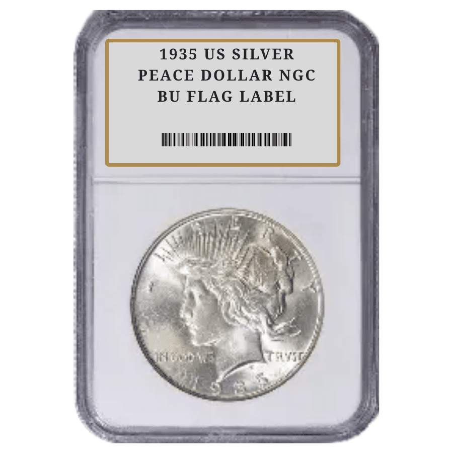 1935 US SILVER PEACE DOLLAR NGC BU FLAG LABEL