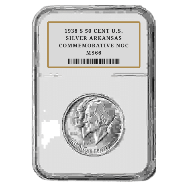 1938 S 50 CENT U.S. SILVER ARKANSAS COMMEMORATIVE NGC MS66