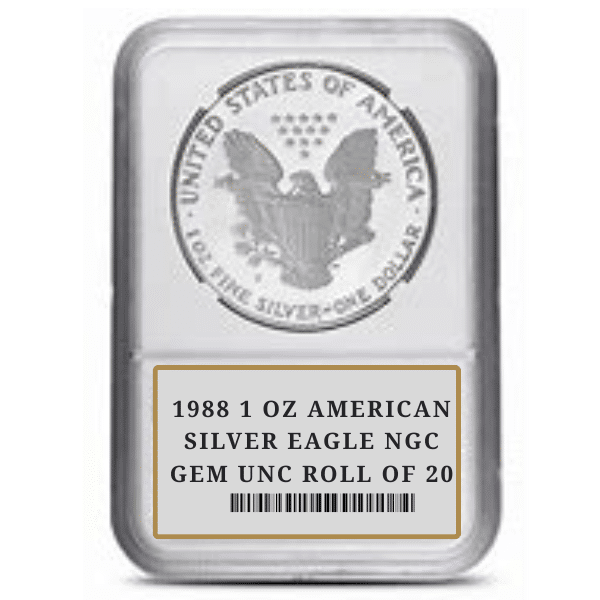 1988 1 OZ AMERICAN SILVER EAGLE NGC GEM UNC ROLL OF 20
