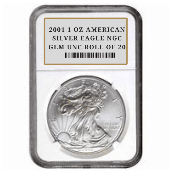 2001 1 OZ AMERICAN SILVER EAGLE NGC GEM UNC ROLL OF 20