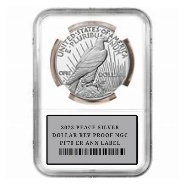 – 2023 Peace Silver Dollar Rev Proof NGC PF70 ER Ann Label